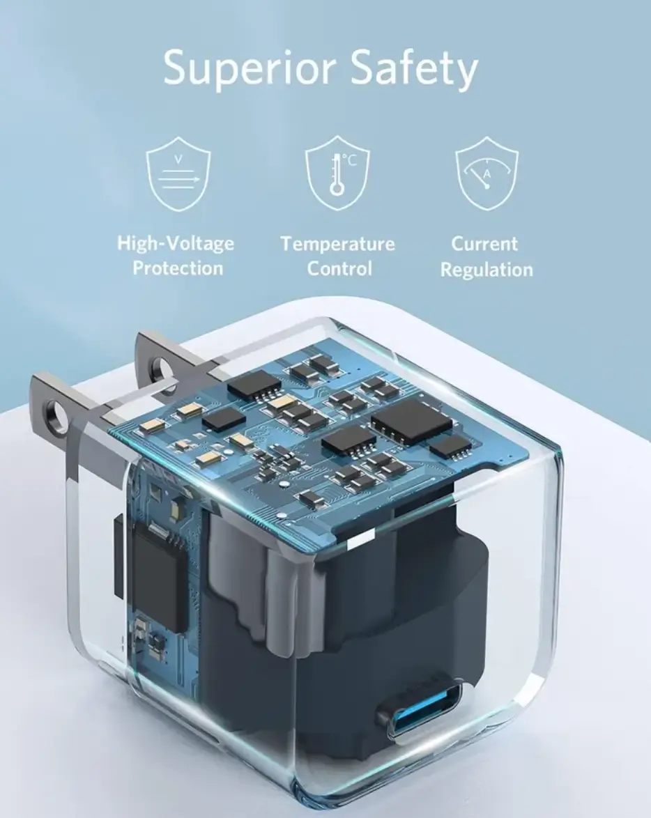 - أصغر حجماً: أصغر بنسبة تصل إلى 30% من شواحن الـ 30 واط التقليدية.