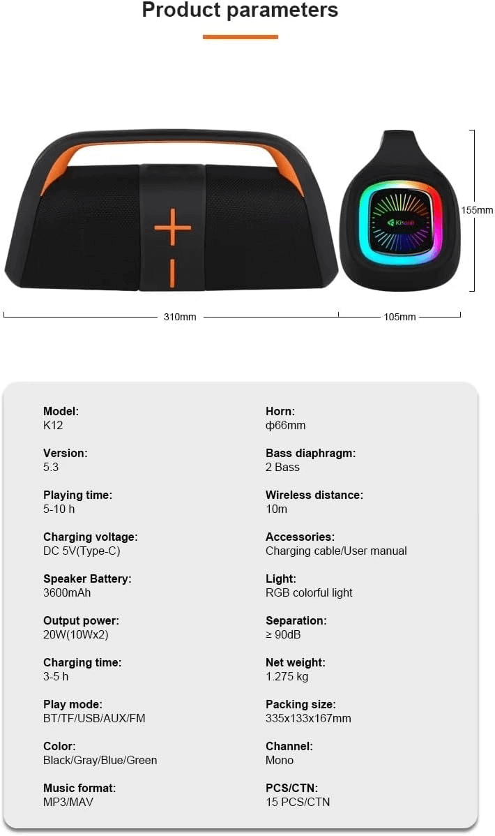 صوت جبار بقوة 20W: يوفر تجربة صوتية قوية وعميقة تناسب الحفلات والتجمعات.