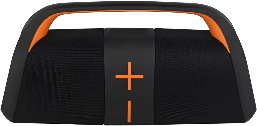 تصميم عملي ومتين: مزود بمقبض علوي مدمج (Handle) لسهولة حمله ونقله في أي مكان، مع أزرار تحكم بارزة (+) و (-) لضبط الصوت بسهولة.