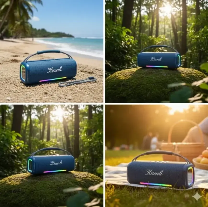 مكبر صوت بلوتوث محمول Kisonli K10 بقوة 30 واط مع إضاءة RGB وصوت ستيريو باس قوي