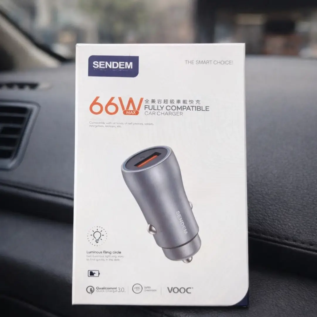 يعتبر شاحن السيارة من Sendem بقوة 66 واط الحل الأمثل لشحن هواتف الأندرويد والآيفون بأقصى سرعة ممكنة أثناء القيادة. يتميز بتصميمه الأنيق الذي لا يشغل مساحة، مع أداء جبار يضمن لك عدم نفاذ البطارية أبداً.