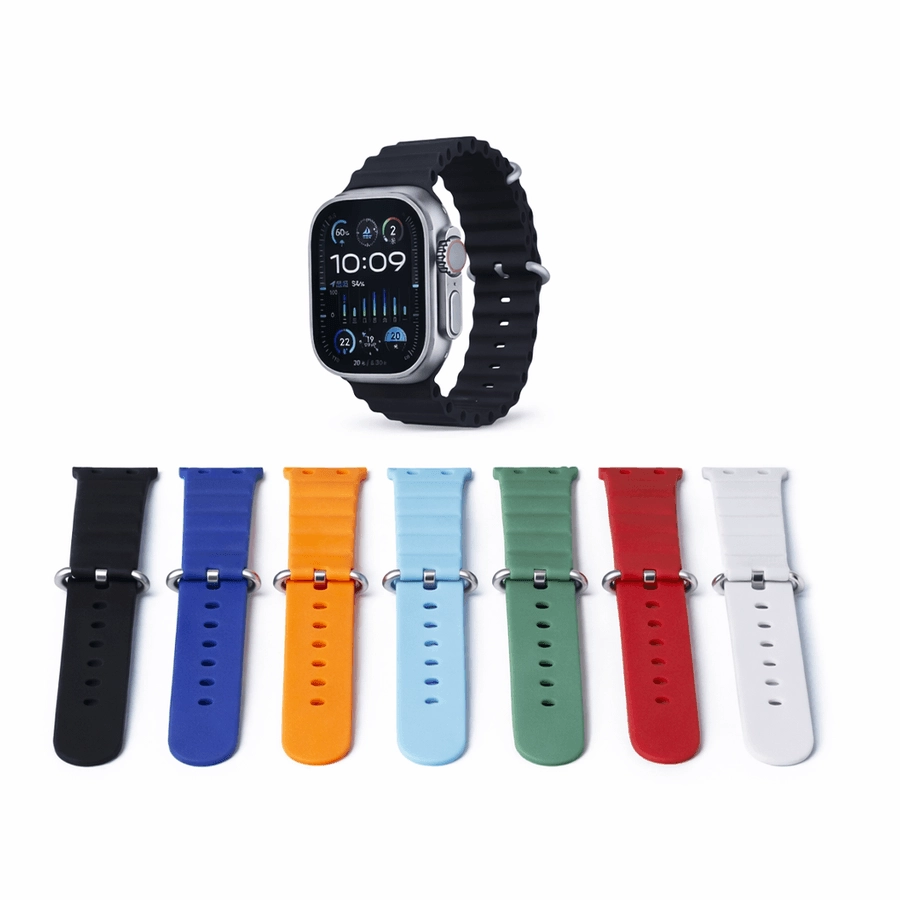 باقة الـ 7 أحزمة (7 in 1): التميز الحقيقي هنا هو الحصول على 7 أساور مختلفة الألوان والمواد (سيليكون، قماش، إلخ) داخل العلبة، مما يجعلك تملك 7 ساعات في ساعة واحدة.